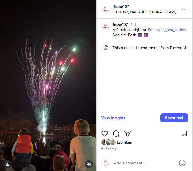 Thanks to the Hinckley Sea Cadets for a brilliant evening. Fabulous fireworks, blazing bonfire and just great music